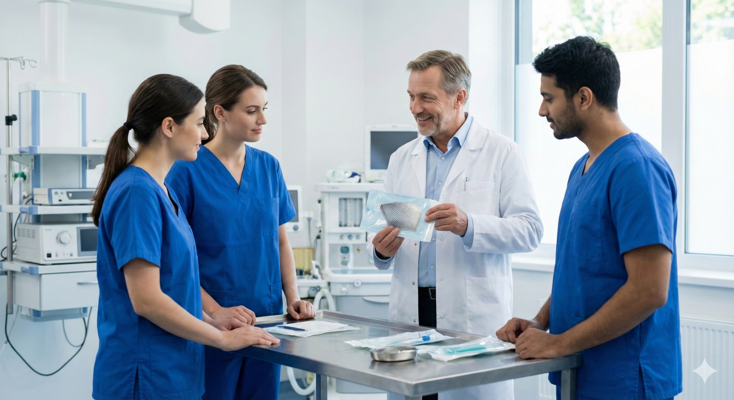 Acelera a cicatrização, reduz a dor do paciente e diminui drasticamente a necessidade de trocas de curativo